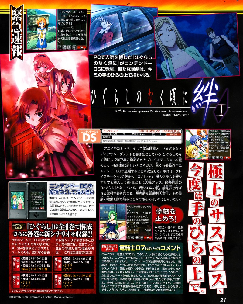あの『ひぐらし』がDSで!『ひぐらしのなく頃に絆』|Techinsight Japan